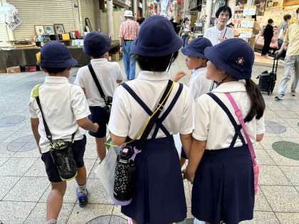 商店街には人気のお店やそこでお仕事をしている人たち、そしてたくさんのお客さんがいます。ご迷惑にならないように、見学する際の約束を全体でしっかり確認しました。