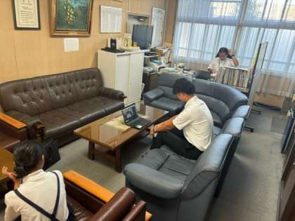 全校生に向かって、リモート朝会で自己紹介をしてもらいました。