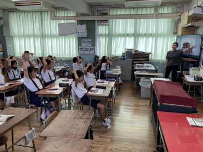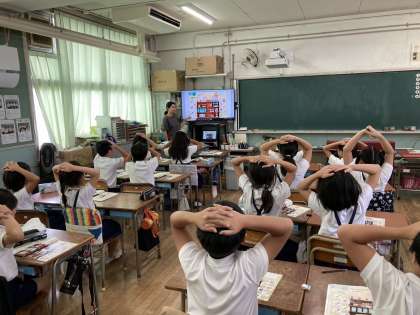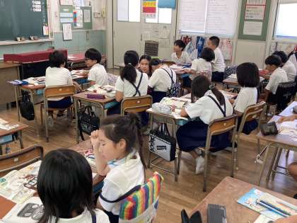 24日(火)C−NETのKay先生による外国語の授業を4年生が始めて受けました。