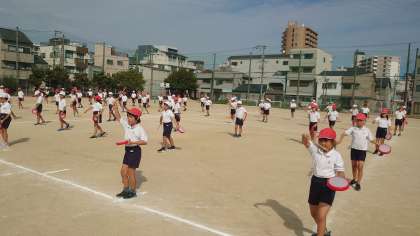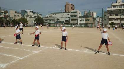 校庭での練習です。全体的な流れはできるようになってきたので、立ち姿やポーズの細かな確認を行いました。