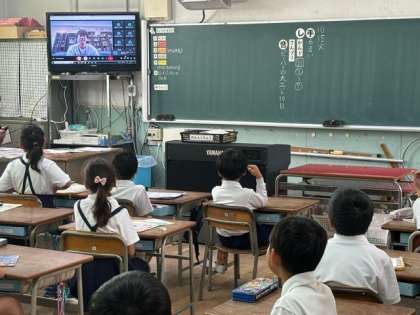 今日はイレギュラーな職員朝会後の児童朝会だったので、子ども達が移動しなくて済むリモートでの児童朝会でした。