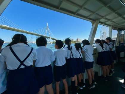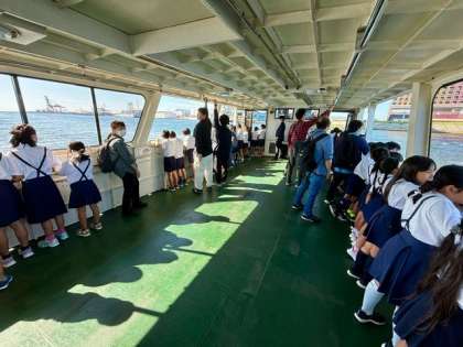 お腹いっぱいになり、子ども達は渡し船に乗車させて頂きました。