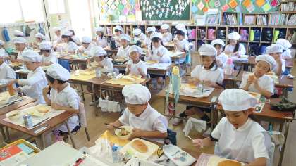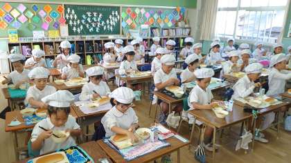 1年2組さんはみんな姿勢を正しておいしそうに給食を食べていました。