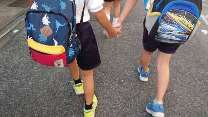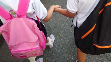 仲良くお隣通しで手を繋いで進んでいく1年生!なんともかわいい姿ですね。