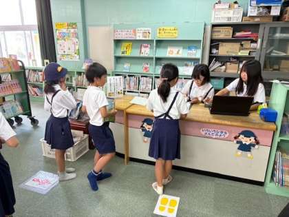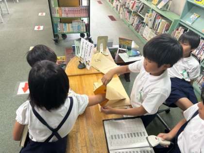 図書室で本を借りると1つのピースがもらえます。教室へ帰ってピースをはめこみながら、パズルを完成させる取り組みです。