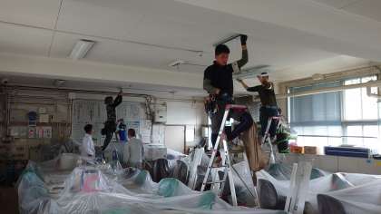 学校中の電気をLEDにする工事が先週25日(金)から進んでいます。