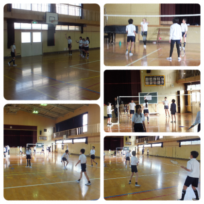 12月15日(火)、5年生の体育の学習の様子です。体育館でバドミントンをしていました。