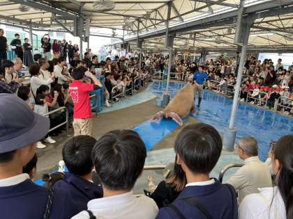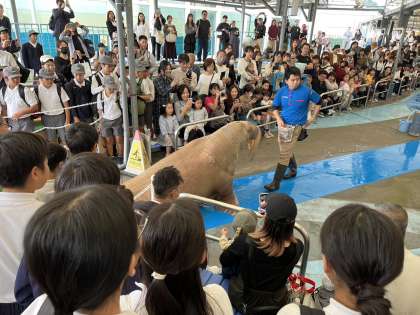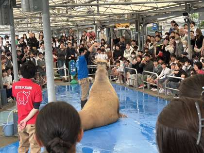 セイウチショーにくぎづけ。
