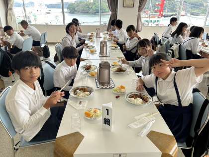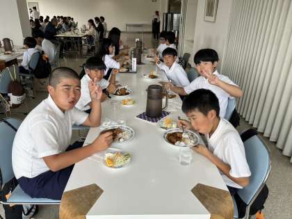 お昼においしいカレーを食べていますが、家につく頃はお腹を空かせているかもしれません。現在14時14分。あと2時間ほどで学校着予定です。