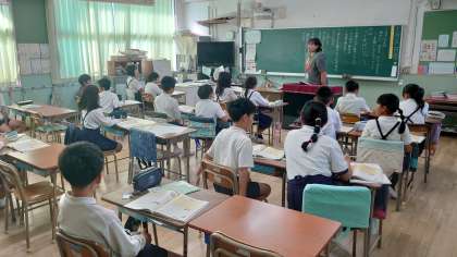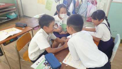 写真を撮影しようと教室に入っていくと、それに気づいた子ども達がすかさず「〇〇先生のいいところは面白いところや!」と伝えてくれました。それを聞いた私は「えっ!?かっこいいところやろ。」と伝えると、急に真顔になり、下から上へとじっくり顔を見つめてくる子ども達。本気で言葉を失っている様子が面白かったです。