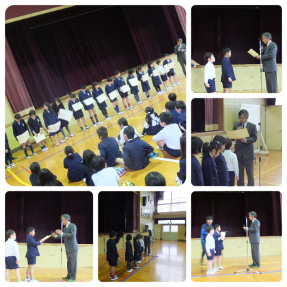 校長先生から、「今年を表す漢字は「安」、来年は、安全で安心なればいいね」とお話があった後、先週に続き、表彰状の伝達がありました。