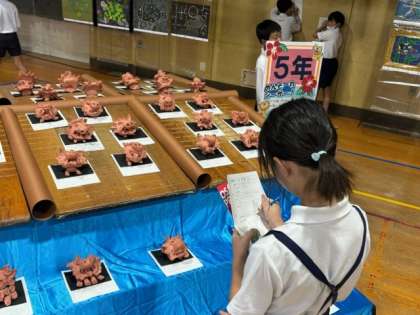 作品展の鑑賞会も図画工作科の鑑賞能力を評価する授業の一貫です。なので、感じたことや気付いたことをしっかり書いていることを願います。