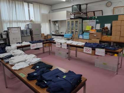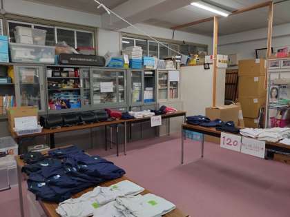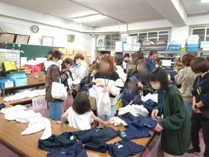 作品展・授業参観の後、標準服リサイクル配布を行いました。 標準服やポロシャツに上靴、サイズごとに分けて準備万端、、、時間になり配布が始まると大盛況ぶりにびっくりです。 掘り出し物があれよあれよとなくなっていきました。 今年度のリサイクル配布はこれにて終了です。ご協力ありがとうございました。(学年学級委員会)