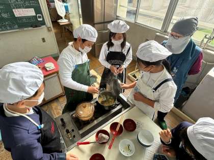 20日(水)5年2組が調理実習を行い、みそ汁作りに挑戦しました。