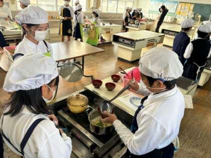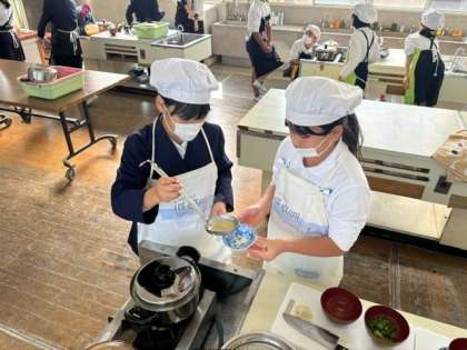 グループの友達と分担しながら手際よく作業を進め、おいしいみそ汁を作ることができました。これでお家でもおいしいみそ汁を作ることができるはず。