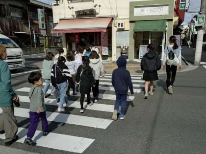 23日(土)小学校前に集合して、駒川商店街にて開催のこどもマルシェに出発です!