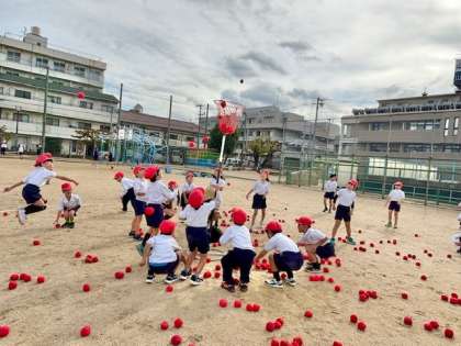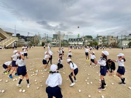 27日(水)玉入れ週間1年生の様子です。何をやってもかわいい1年生。