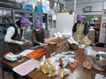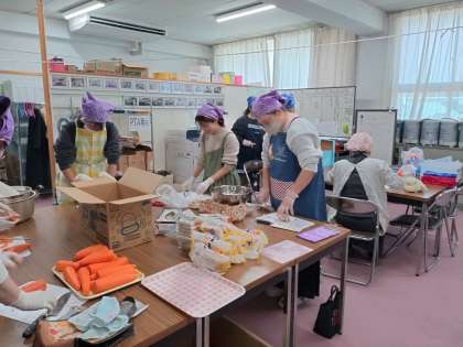 PTAは、もちつき祭で豚汁の提供と、もち丸めのお手伝いをします。 本日は、豚汁準備を行いました。大量の野菜やお肉を、どんどん切っていきます。お母さん方の手際の良さにビックリ!!さすがです!!お母さんががんばってる間、子どもたちも大人しく遊んで待っててくれました。ありがとう。 もちつき祭がみんなにとって楽しい1日となりますように。