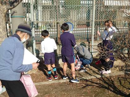 土や葉っぱの色とそっくりの昆虫たち。保護色の意味や食べ物について講師の先生との会話を楽しみながら活動しています。
