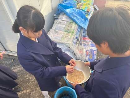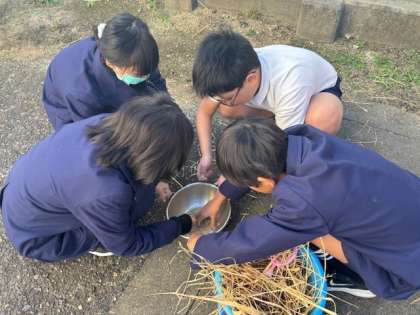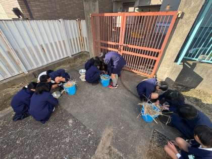 5年生が育てたバケツ稲のもみとりを行いました。ちょっと時期が遅くなってしまったのですが、体験重視。