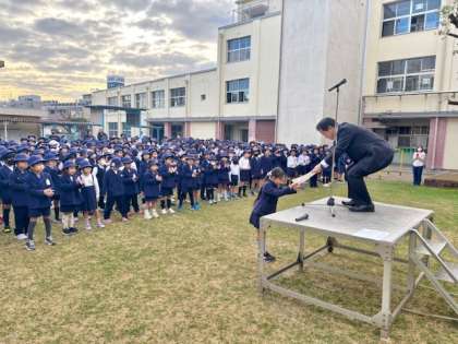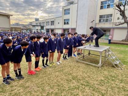 15日(月)の児童朝会では、「南百FCのクリスマスカップ準優勝」「We LOVE トンボ絵画コンクール」「ぴかぴか週間に清掃活動で頑張ったクラス」の表彰が行われました。