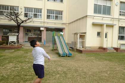ふと中運動場を見ると、事前練習に励む子がいました。