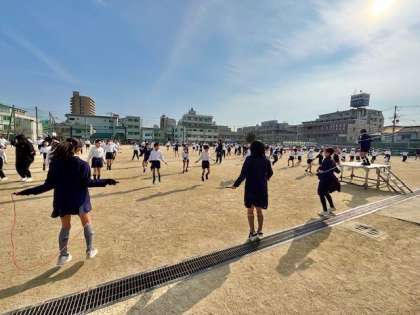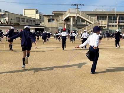 清々しい冬晴れの下、元気になわとび運動に取り組む子ども達です。