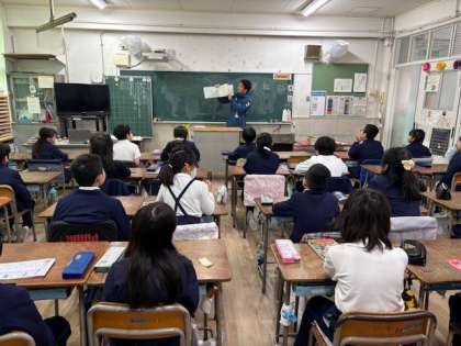 3年生の様子(上から1組、2組、3組)です。みんな真剣にお話を聞いているようですね。