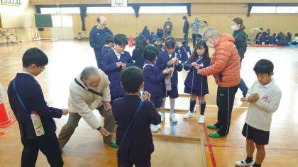 31日(金)南百済連合町会の各町会長さんや女性部の方々にたくさん来校していただき、2年生に昔遊びを教えて頂きました。