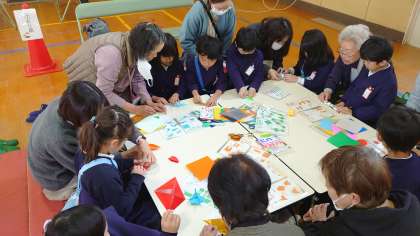 お手玉、折り紙、けん玉遊びの様子です。