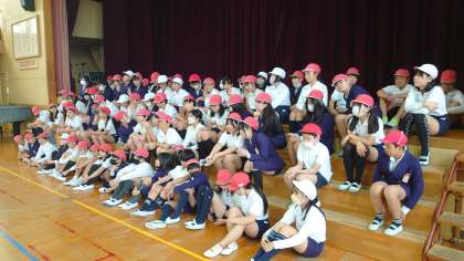 練習に入る前に、全員で縄跳び検定に挑戦していました。