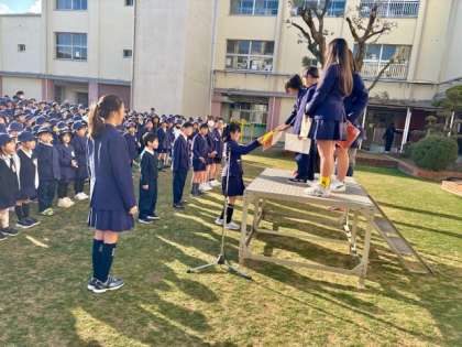 10日(月)の児童朝会では、先日実施した給食週間での給食クイズの表彰式が行われました。