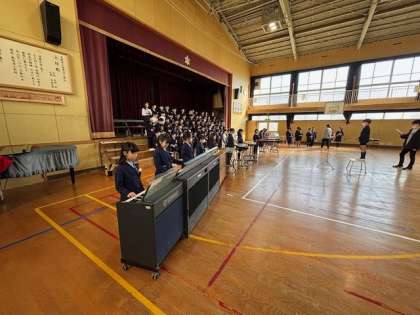 3年生は体育館で練習を進めています。明日はお休みなので、学年全体で練習できるのもあと数回となります。本番は自信をもって発表できるよう祈っています。