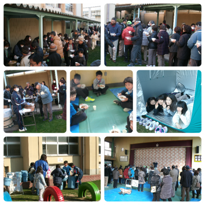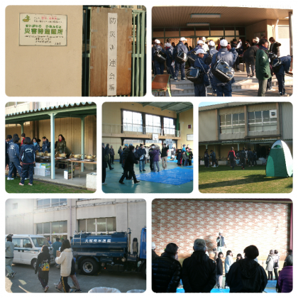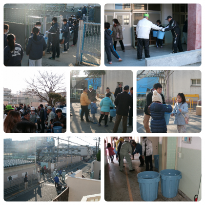 プールからトイレにバケツリレーで水を運ぶ訓練や非常食の炊き出しもおこなわれました。