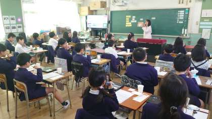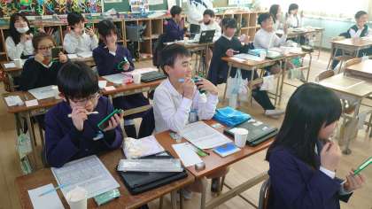20日(木)5時間目、4年生が歯科衛生士さんからフッ化物洗口の授業を受けました。