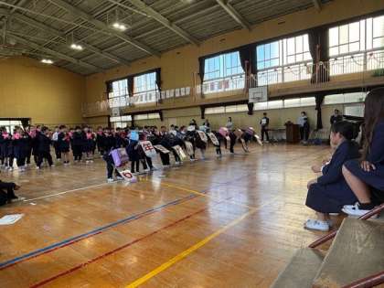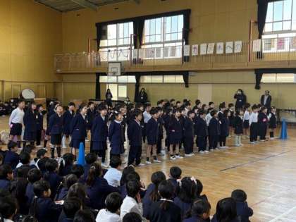 26日(水)に行われた6年生を送る会で1年生は大好きな6年生に歌のプレゼント感謝の言葉を贈りました。