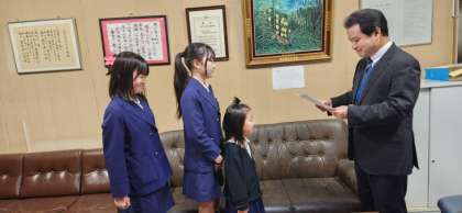 3月3日の児童朝会は表彰をたくさんしました。今日からまた寒さが戻り、雨も降ってきたため、リモートでの実施です。