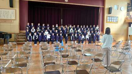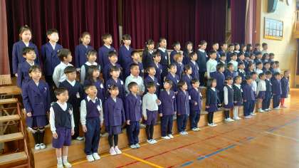 南百済小学校に入学してきて早1年。立派な1年生に成長した子ども達です。学年全員で歌う校歌はとても迫力があり、たくさんの人に聞いてもらいたいくらい上手です。