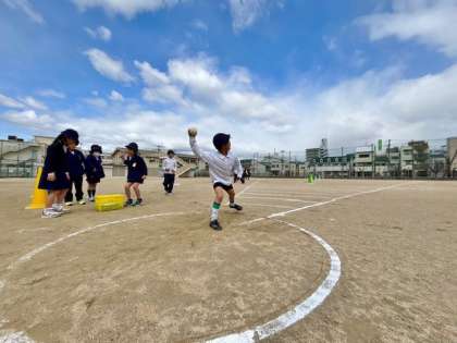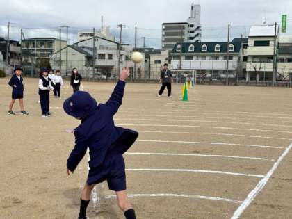 学校全体で「投」の力を育てるために、今年度は「チームで目指せ!150mぴったり」や「玉入れ週間」など様々な取り組みを実施してきました。