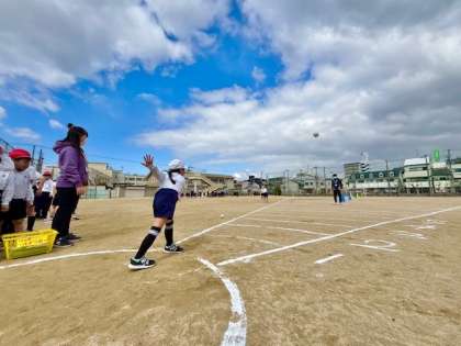 7日(金)20分休みの時間に1年生の遠投大会を開きました。