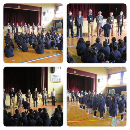 地域から24名のゲストティーチャーの方々を招き、おはじき・ダルマ落とし・羽根つき・折り紙・あやとり・コマ回し・お手玉・メンコ・けん玉の9つの遊びを教わりました。