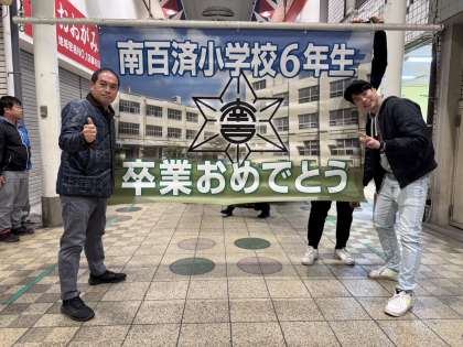 駒川商店街に、卒業を祝うバナーを掲示していただきました。