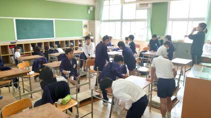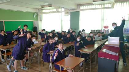 中段:5年3組、これからみんなで動画を観るところらしいです。何を観たのかは、お家で聞いてください。