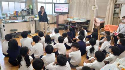 養護教諭の話をしっかり聞いてから測定を始めます。新しい学年に進級し、体はどれだけ大きくなっているかな?