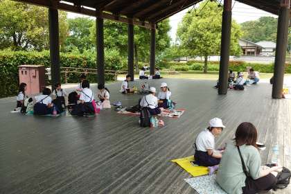 芝生広場には出ないで、休憩所でお昼ご飯をとるグループもいました。
