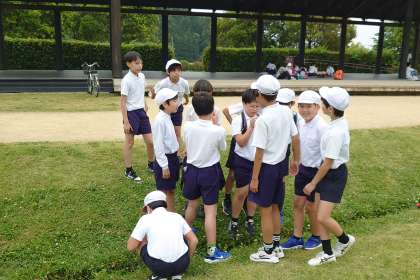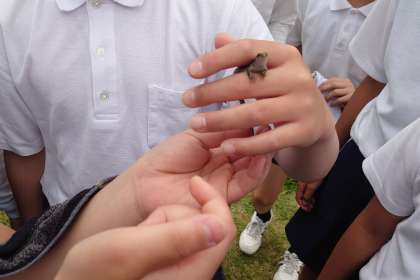 おいしいお弁当を食べ終わると、おやつタイムも早々に遊び出す6年生!生き物探しに夢中になった子達が、捕まえた生き物を見せてくれました。