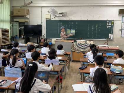 地域のボランティアの方が、月に1回程度読み聞かせに来てくれるのですが、人数の関係で今回は1,2年生での実施です。