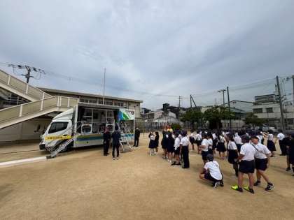 6年生は、初めに起震車で地震が起きた際の揺れを体験しました。