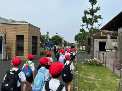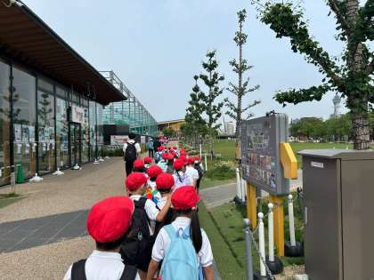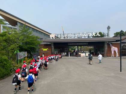 小学校に入学してから初めての電車旅を終え、てんしばを通り、天王寺動物園に無事到着した1年生!動物王国へいってらっしゃい!
