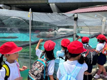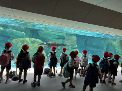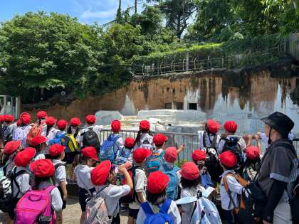 こまめに水分補給しながら、1年生の遠足は続きます。